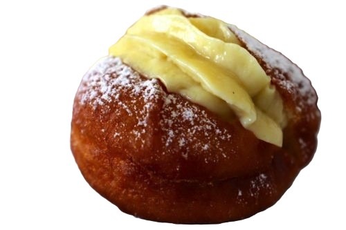 Ambachtelijk gebakken naturel oliebollen gevuld met heerlijke verse banketbakkers room. per stuk 2,- .